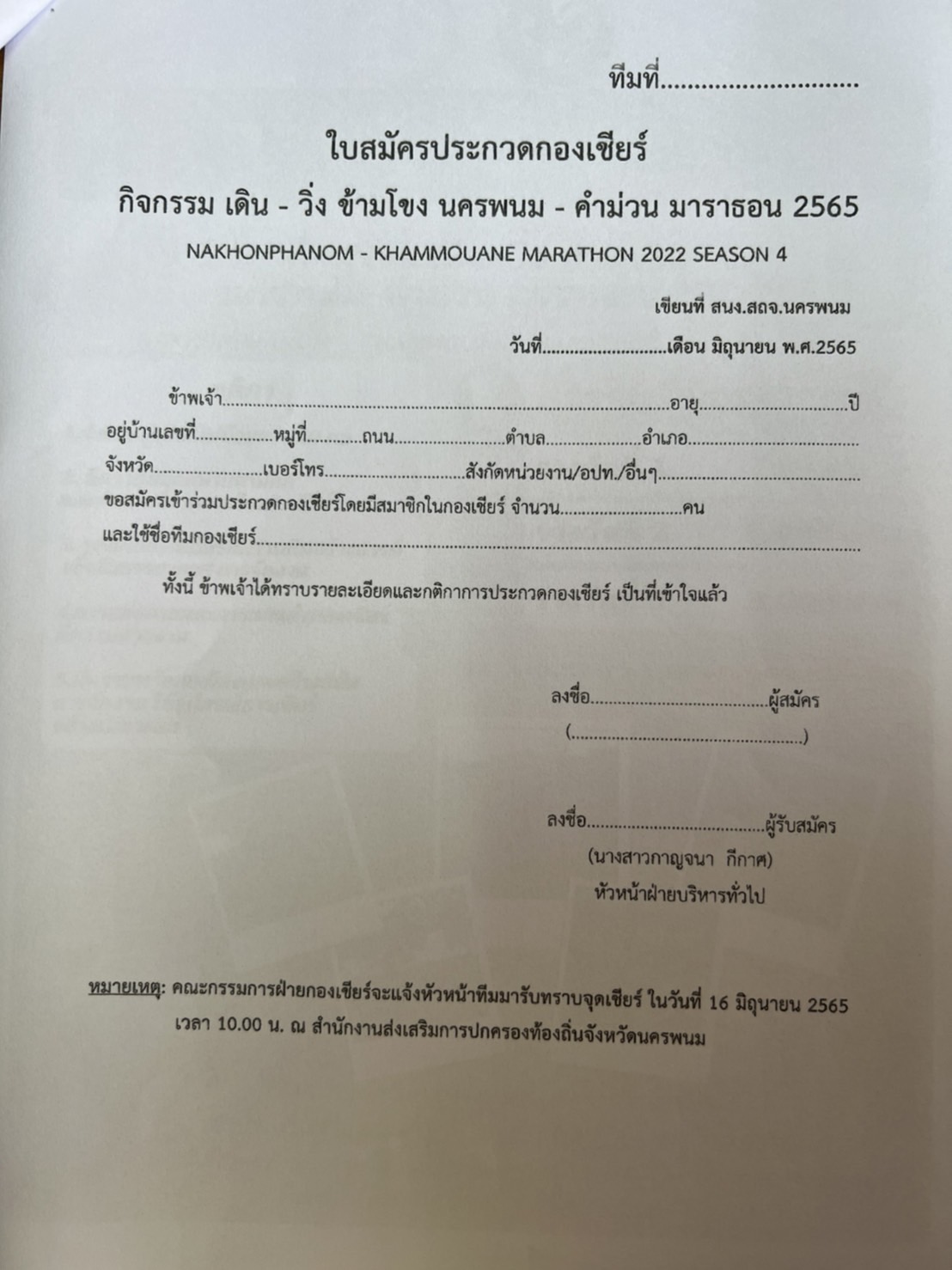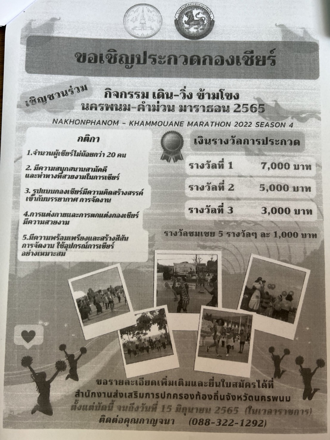 ขอเชิญชวนร่วมสมัครประกวดกองเชียร์ในกิจกรรมเดิน - วิ่งข้ามโขง นครพนม - คำม่วน มาราธอน 2565
