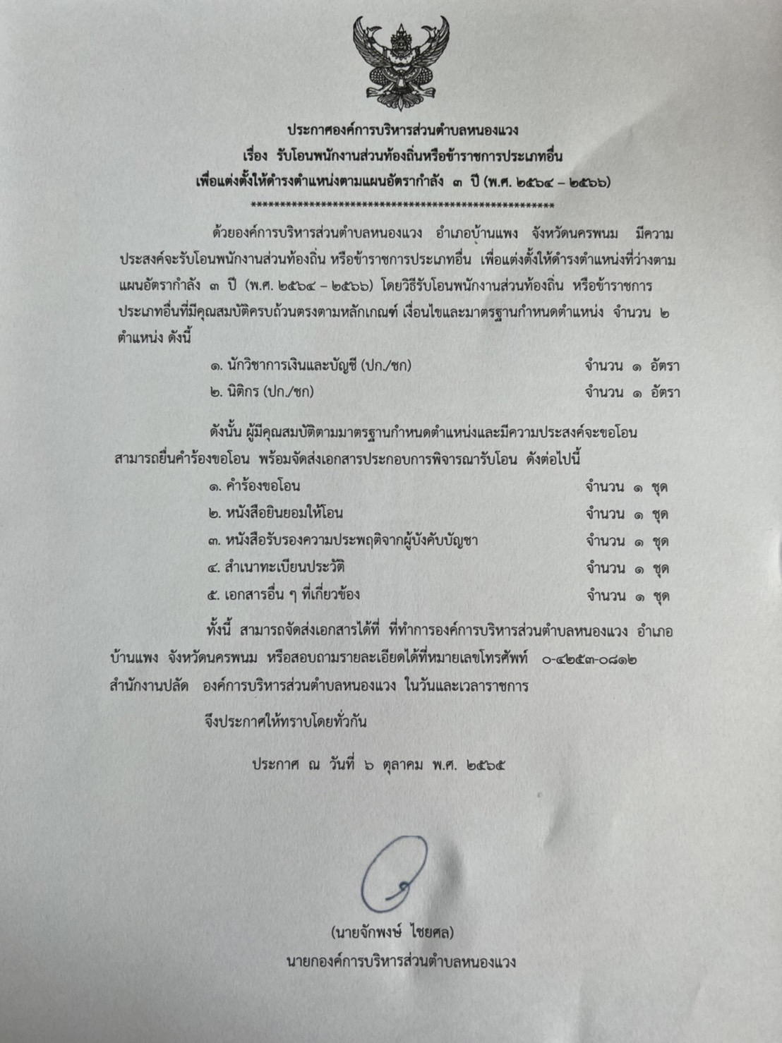 ประกาศ รับโอนพนักงานส่วนท้องถิ่นหรือข้าราชการประเภทอื่น เพื่อแต่งตั้งให้ดำรงตำแหน่งตามแผนอัตรากำลัง ๓ ปี (พ.ศ.๒๕๖๔-๒๕๖๖)