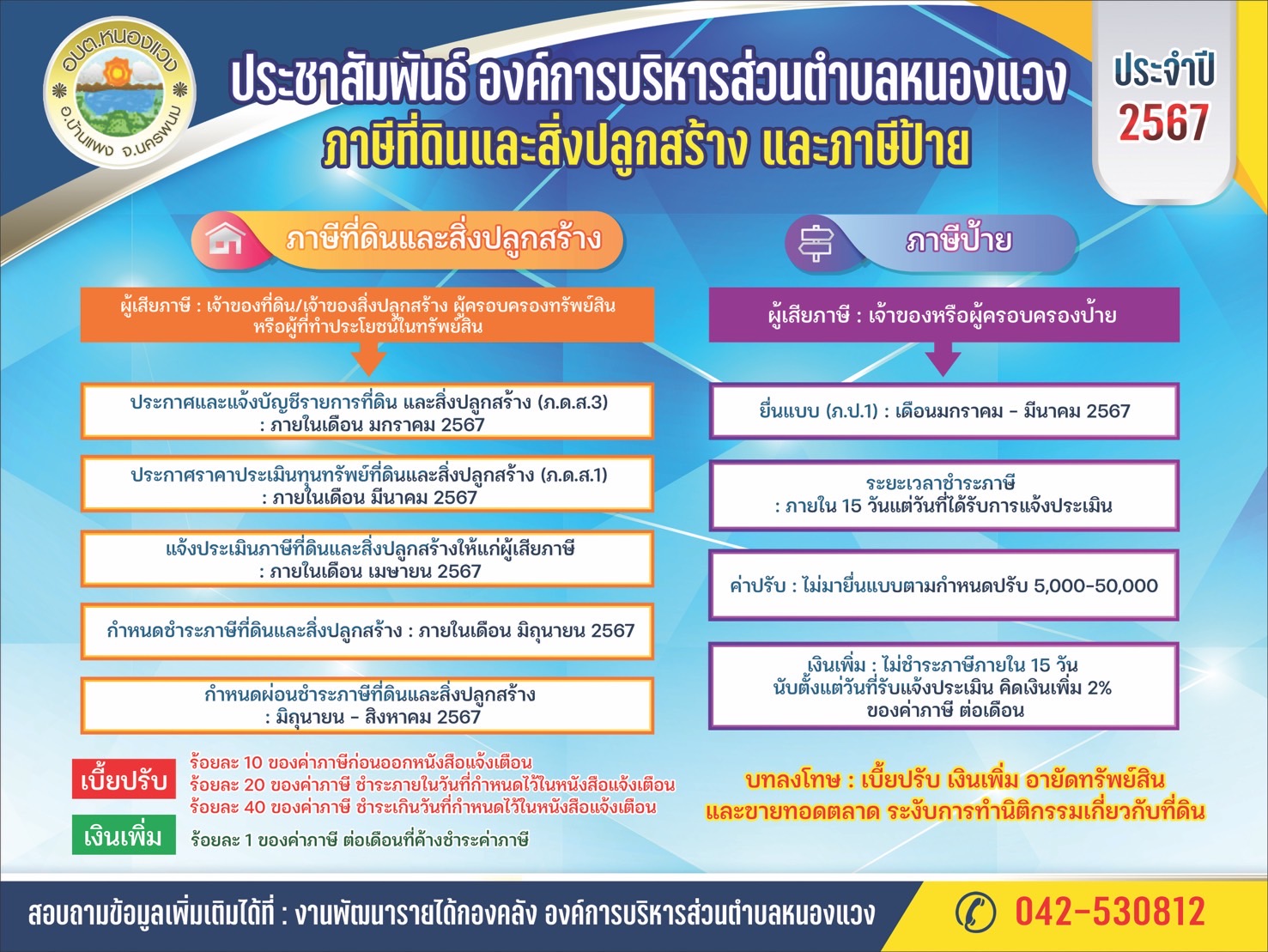 ประชาสัมพันธ์ภาษีที่ดินและสิ่งปลูกสร้าง และภาษีป้าย ประจำปี 2567