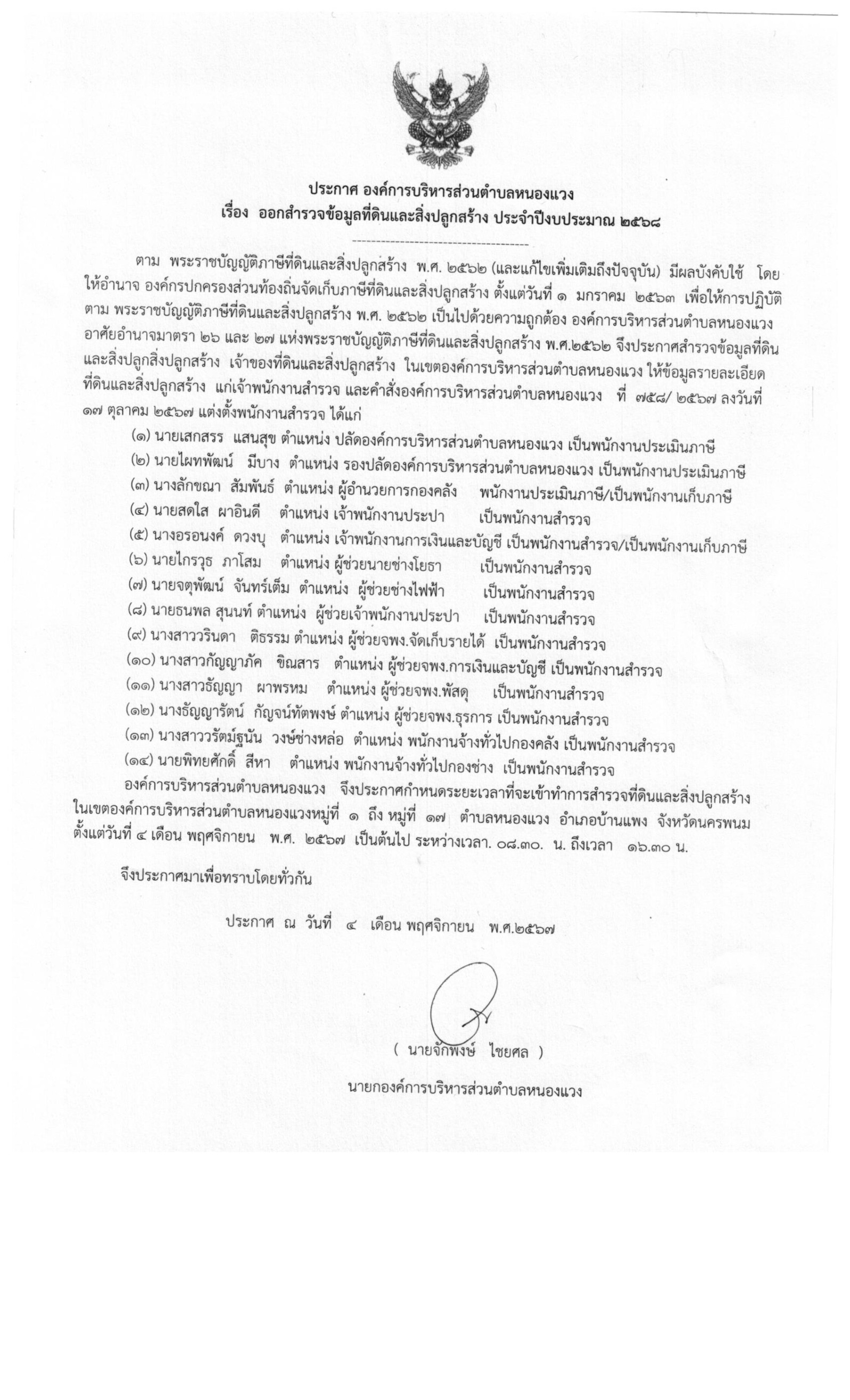 ออกสำรวจ ภาษีที่ดินและสิ่งปลูกสร้าง ประจำปี 2568
