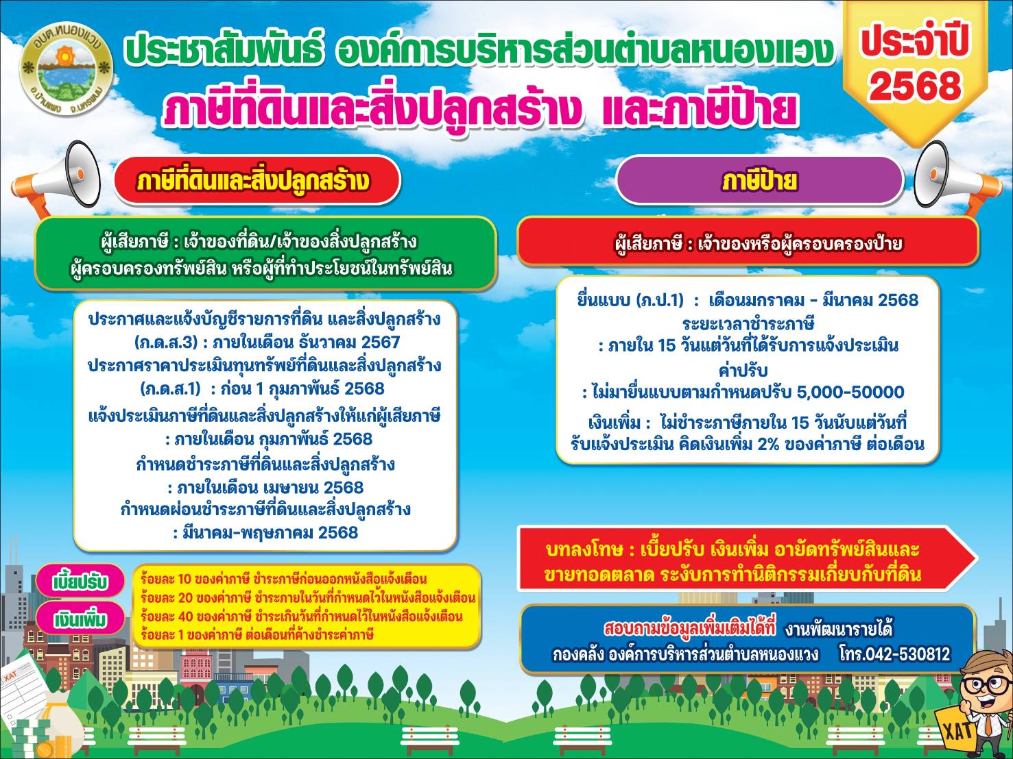 ประชาสัมพันธ์ องค์การบริหารส่วนตำบลหนองแวง ภาษีที่ดินและสิ่งปลูกสร้างและป้าย