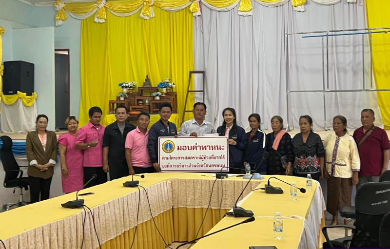 มอบเงินสงเคราะห์ผู้ป่วยที่ยากไร้ (ค่าพาหนะ) ณ หอประชุมองค์การบริหารส่วนตำบลหนองแวง อำเภอบ้านแพง จังหวัดนครพนม